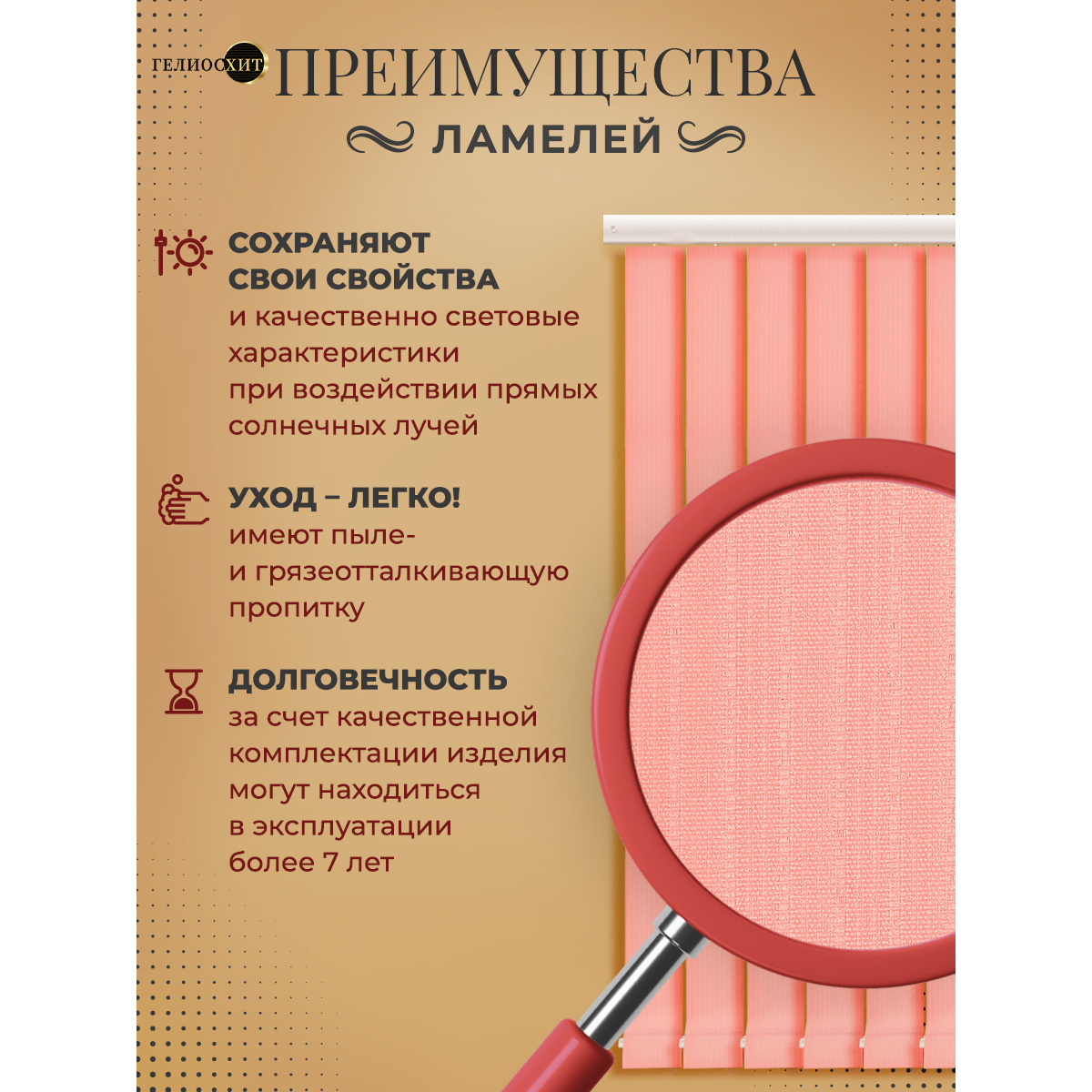 Ламели для вертикальных жалюзи 10 шт высотой 255 см персиковые, ткань Лайн, гелиосхит, карниз приобретается отдельно.