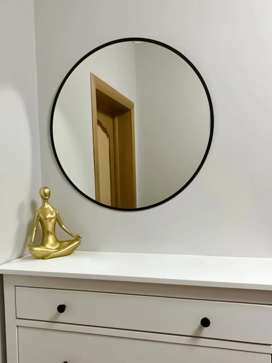Круглое зеркало Makeli 50 см, с черной окантовкой, для ванной и интерьера