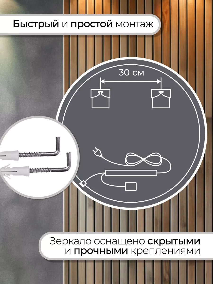 Зеркало настенное большое с подсветкой 80см
