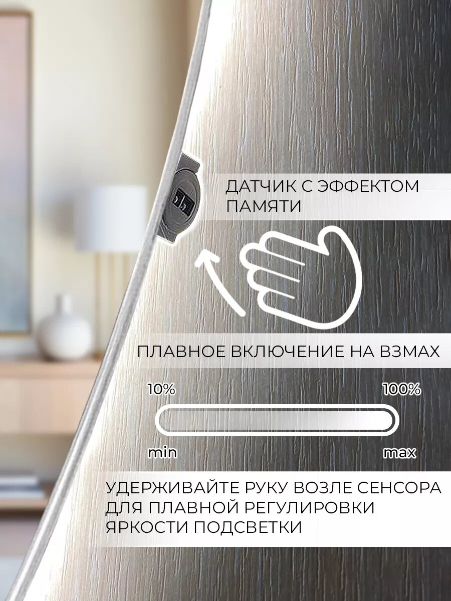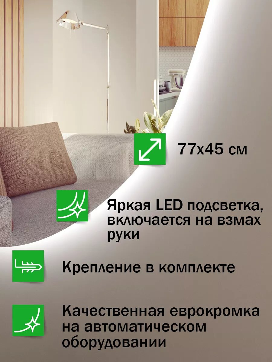 СохранитьНастенное зеркало с подсветкой для ванной 77х45 см интересное: