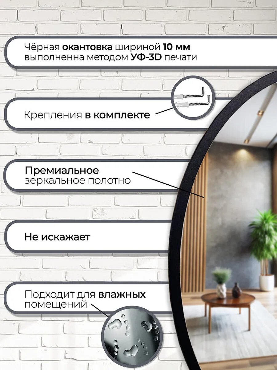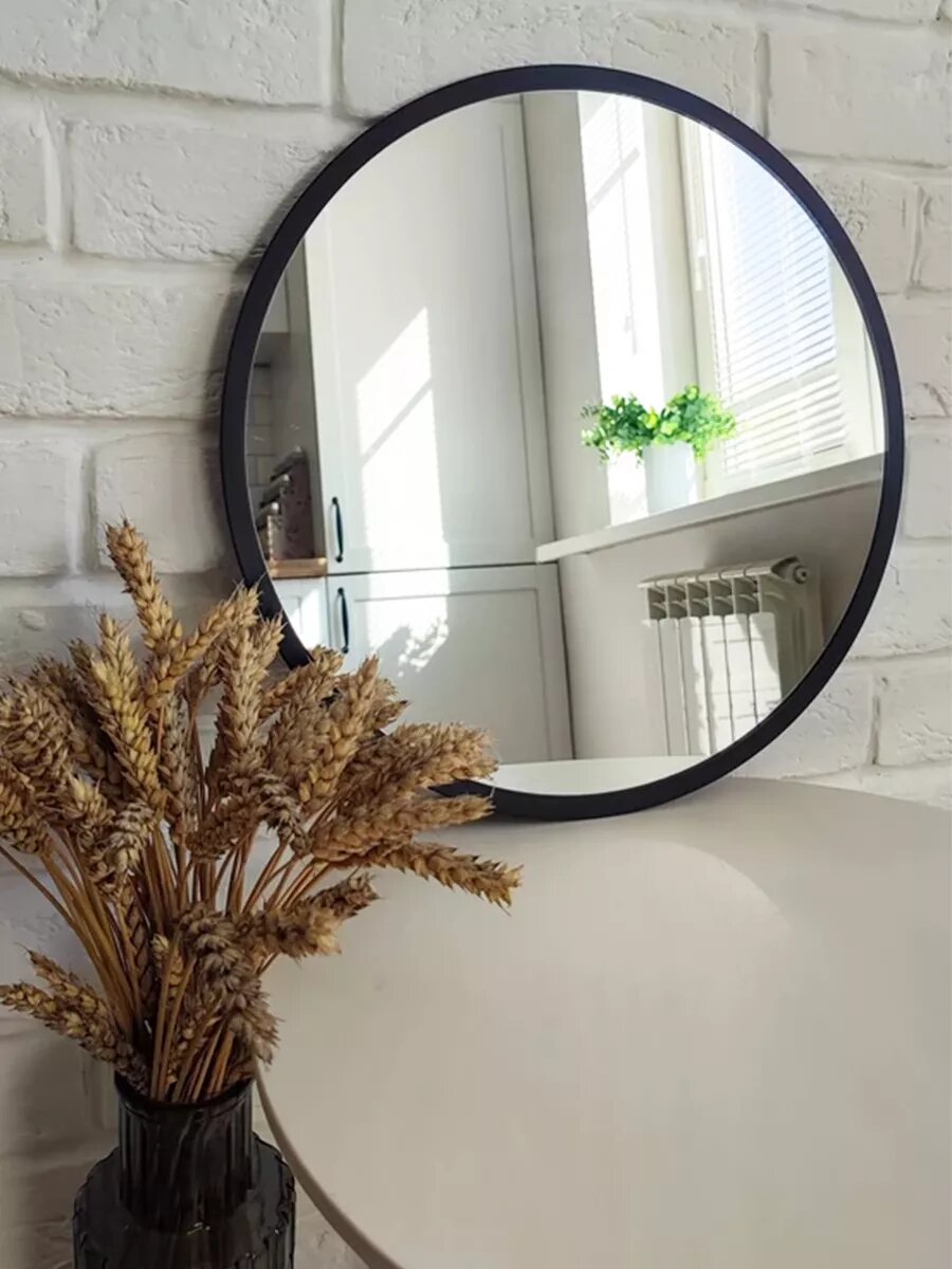 Круглое зеркало Makeli 50 см, с черной окантовкой, для ванной и интерьера
