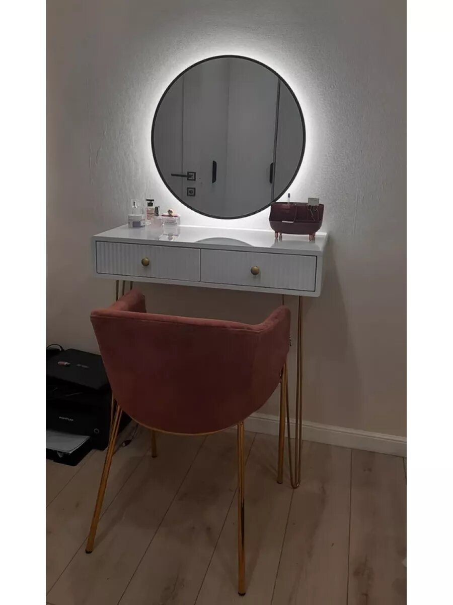 Настенное круглое зеркало Makeli 60 см с подсветкой и белой окантовкой
