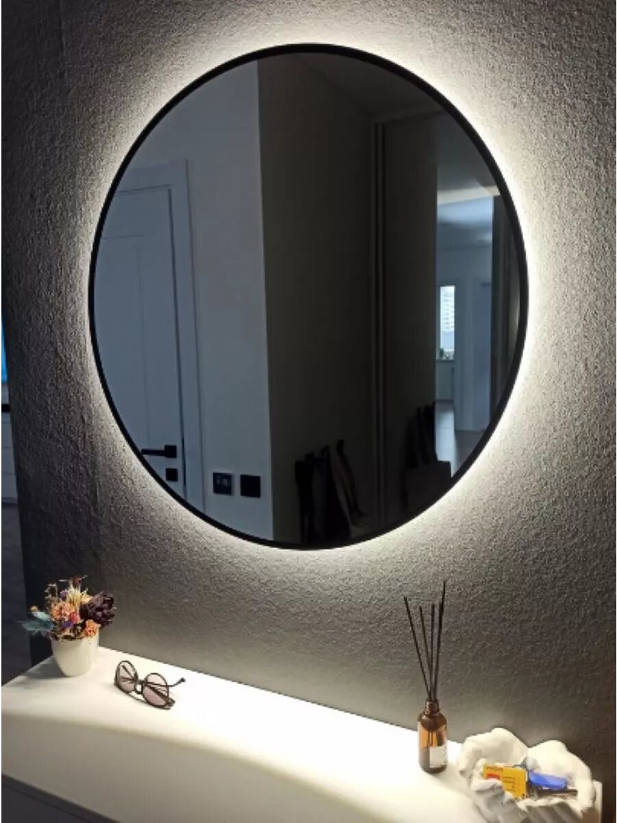 Зеркало настенное с подсветкой и чёрной окантовкой 80 см