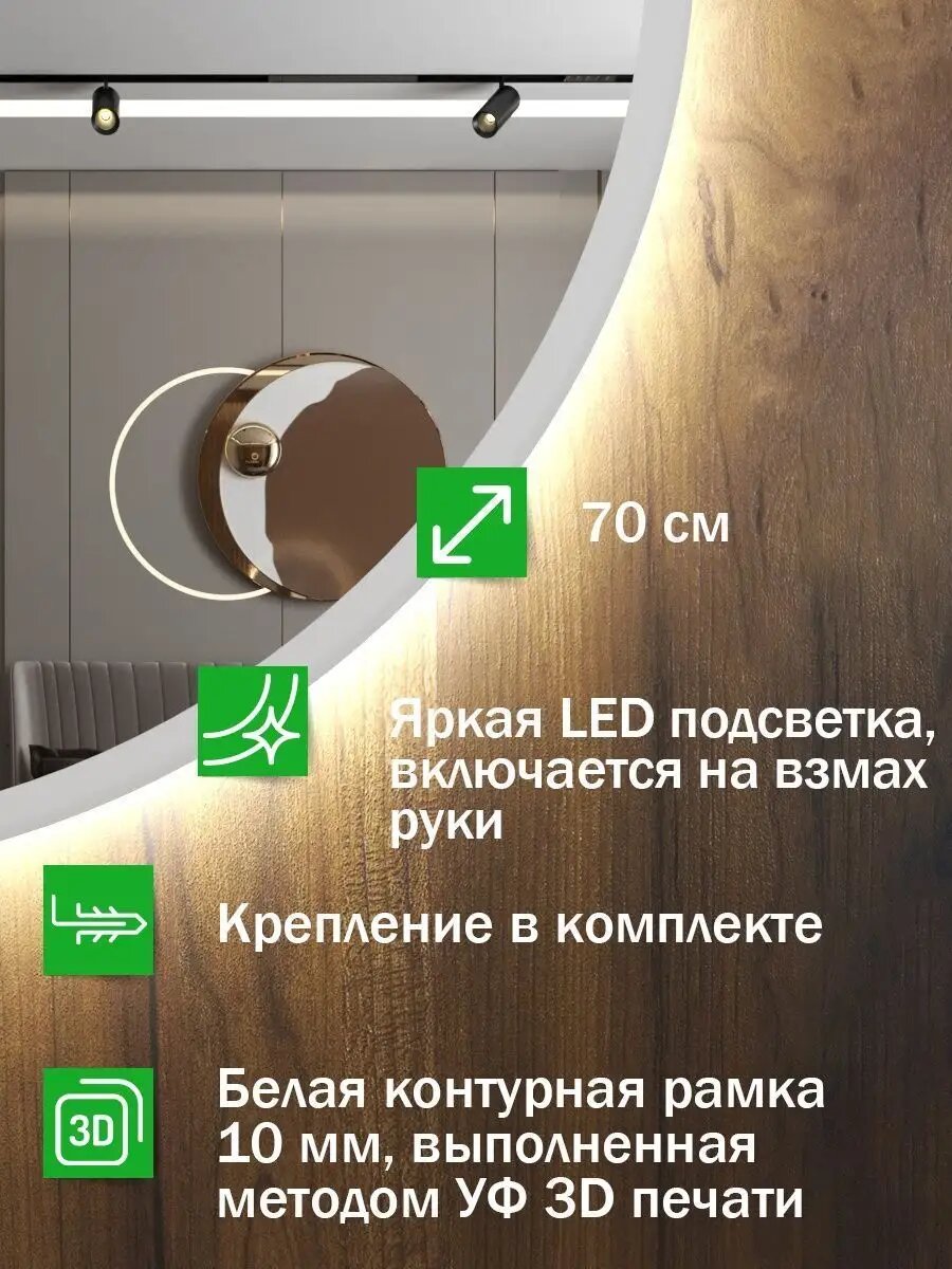 Купить Зеркало настенное с подсветкой белая окантовка 70 см