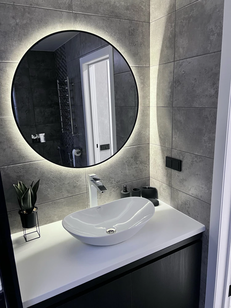 Зеркало настенное с подсветкой и чёрной окантовкой 80 см