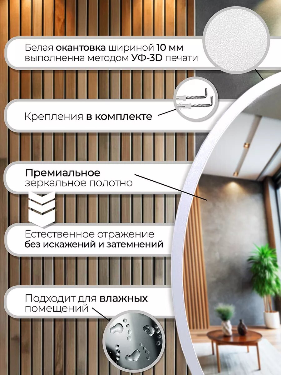 Зеркало настенное фигурное Makeli, 77х45 см, с белой окантовкой