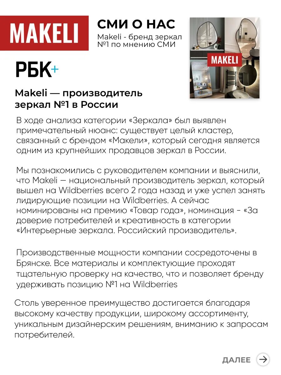 Зеркало настенное фигурное Makeli, 77х45 см, с белой окантовкой