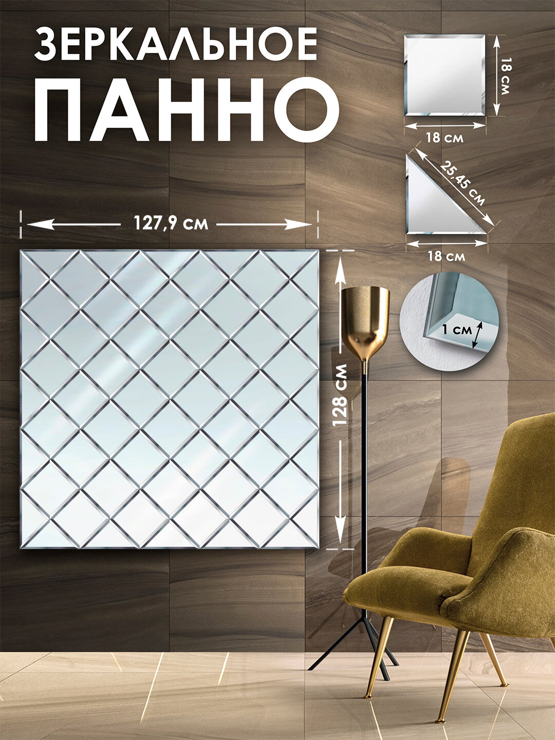 Ниже Вы можете прочитать отзывы на Зеркальное панно "Стеклография" с фацетом, на стену 128 см. х 127,9 см. зеркальная плитка из квадратов и треугольников., ознакомится с подробными характеристиками, посмотреть интересные обзоры и фотографии на Зеркальное панно "Стеклография" с фацетом, на стену 128 см. х 127,9 см. зеркальная плитка из квадратов и треугольников..
