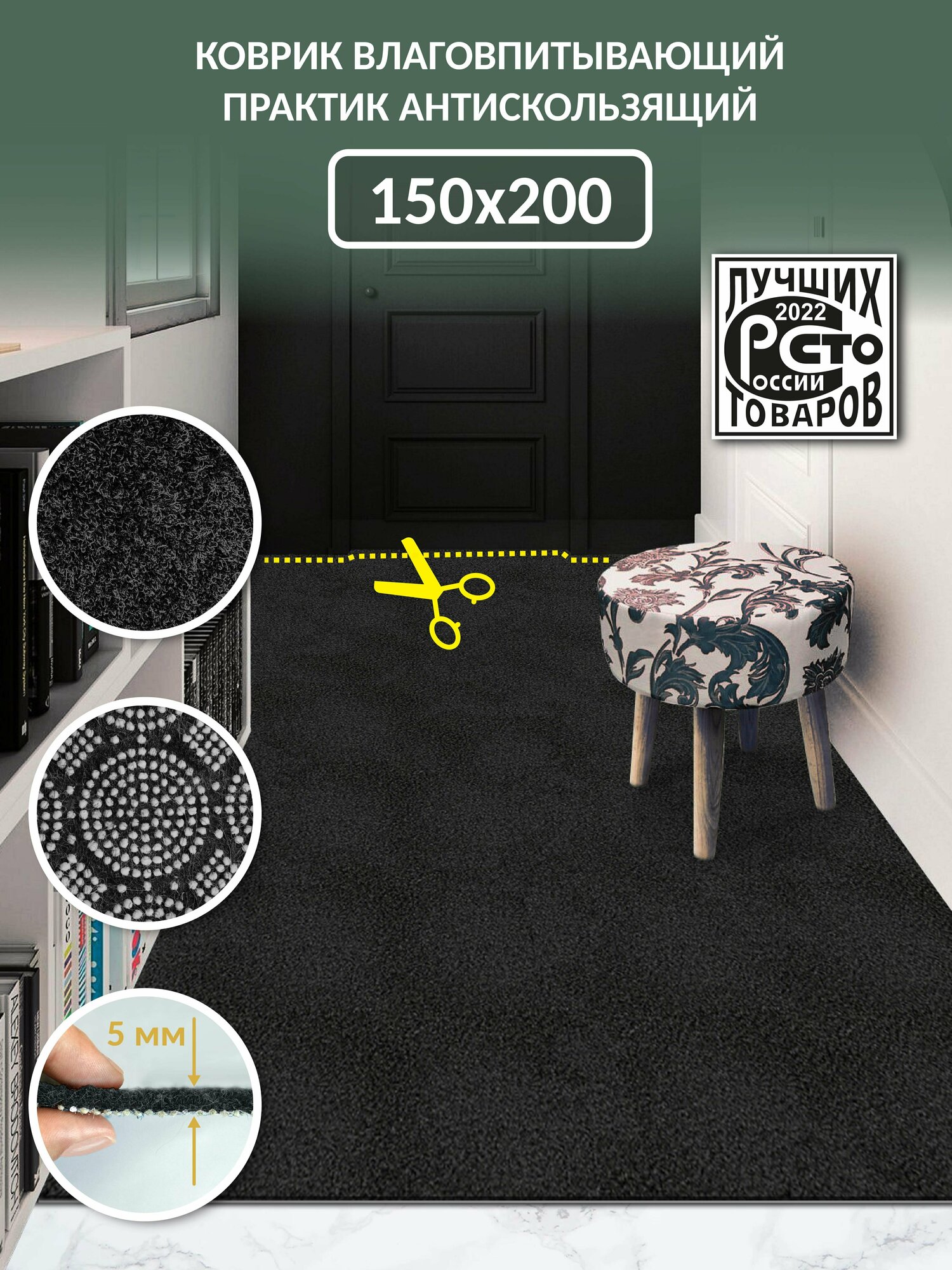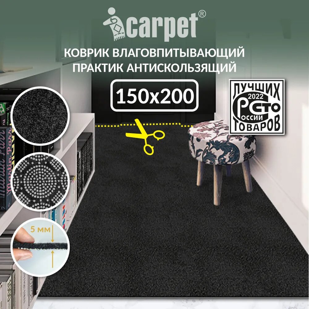 Купить Коврик вырезной придверный icarpet практик антискользящий влаговпитывающий 150х200 черный