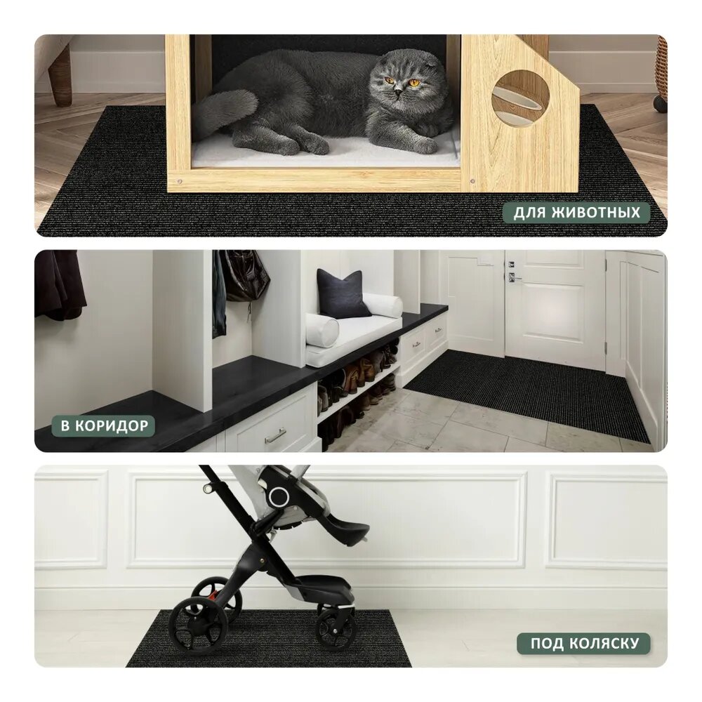 Коврик вырезной придверный icarpet практик антискользящий влаговпитывающий 60х120, черный