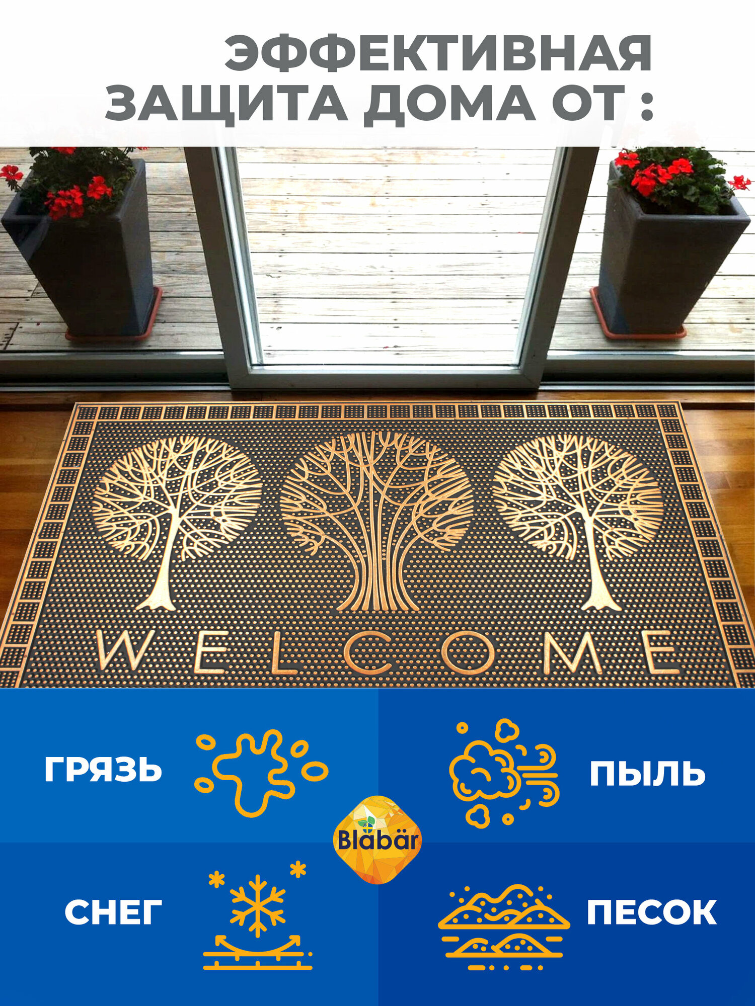Купить Коврик резиновый придверный в прихожую Blabar 45х75 см
