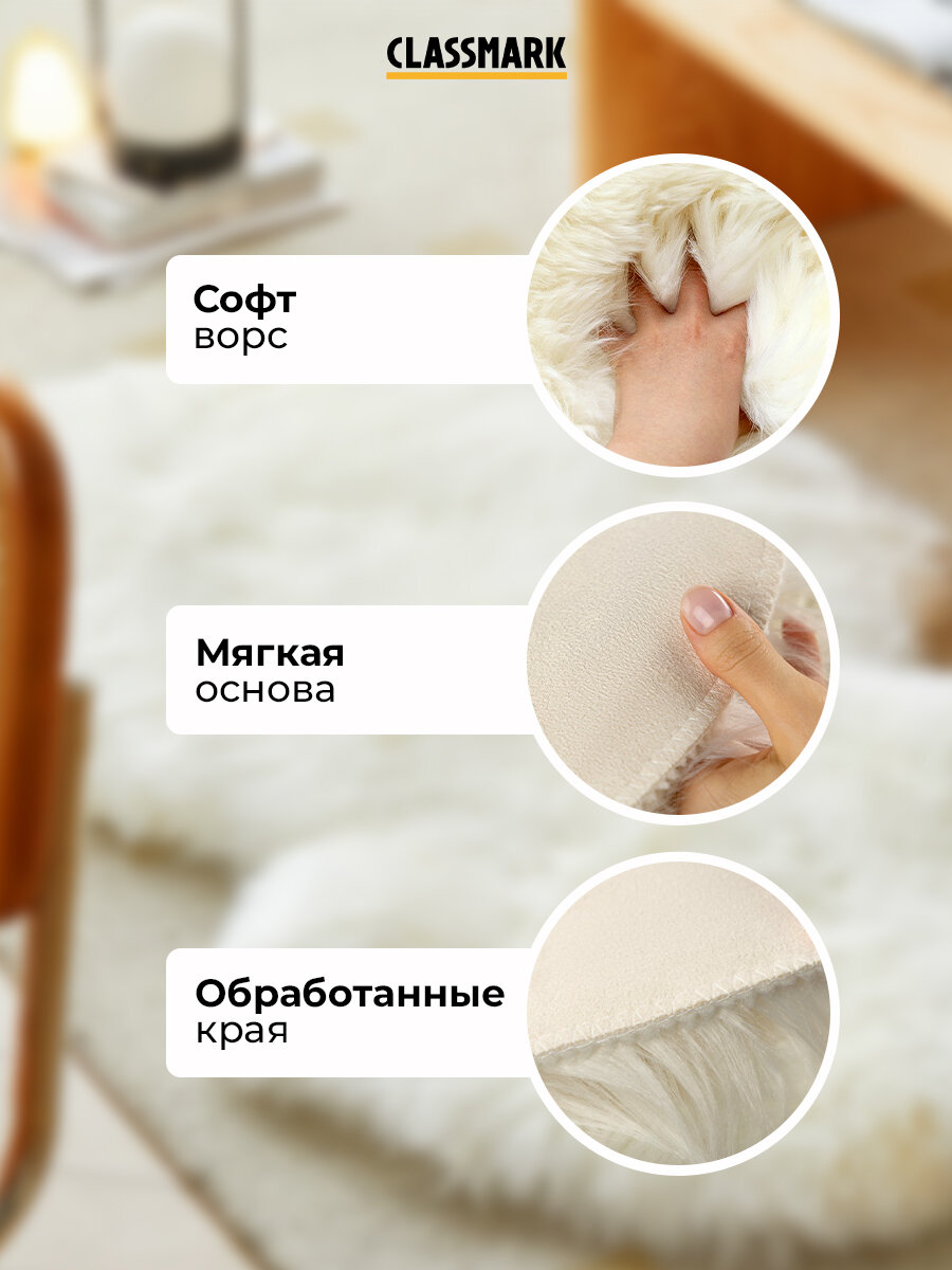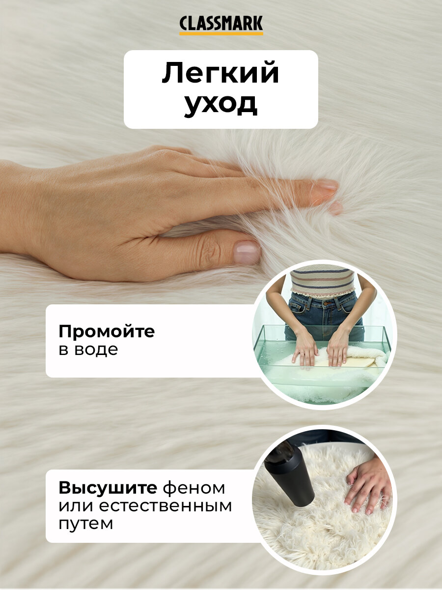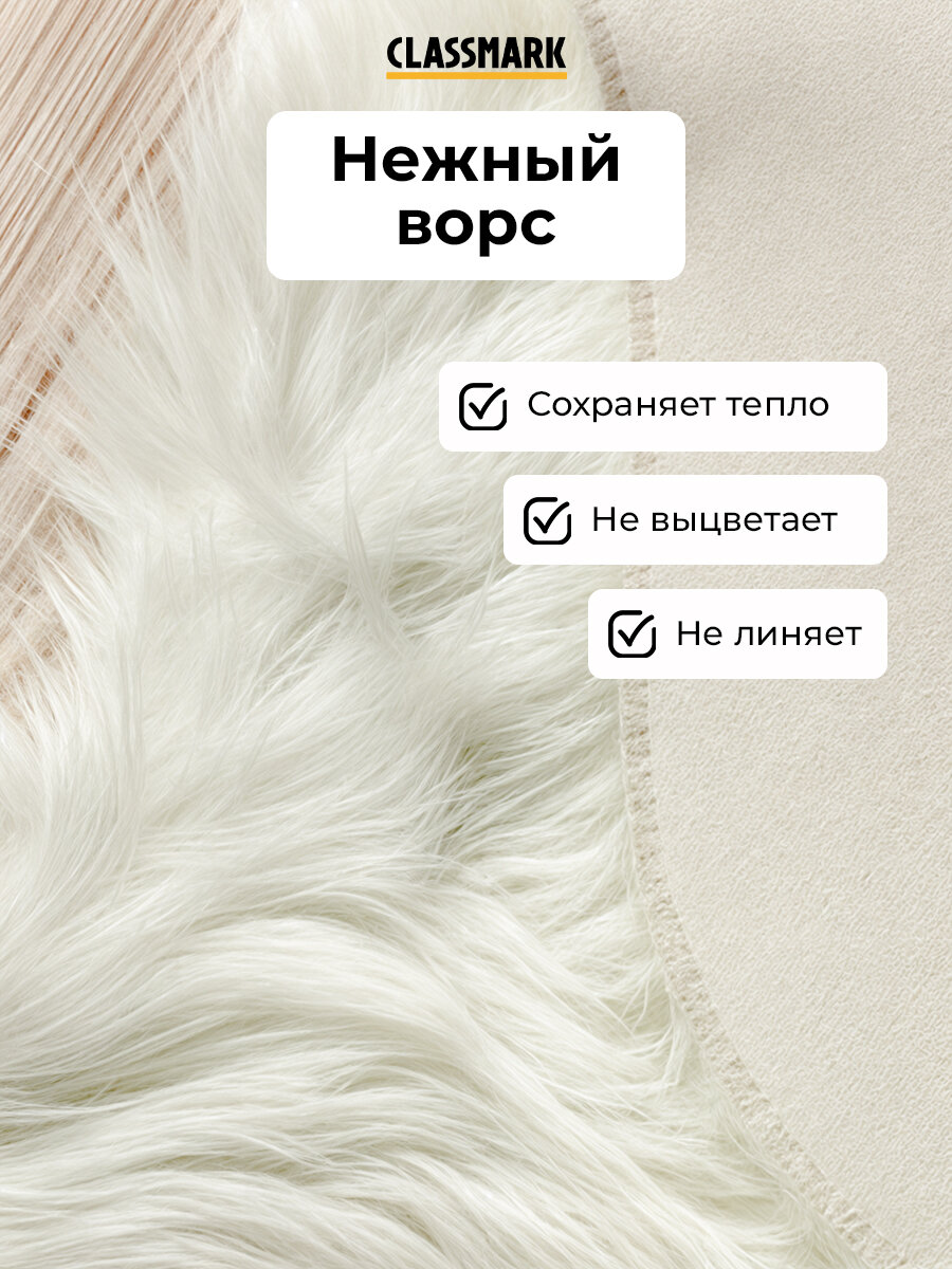 Ковер на пол с ворсом Classmark комнатный, пушистый, 160х200 см, материал изделия 100% полиэстер, основа коврика ПВХ, мягкий и антискользящий, белый