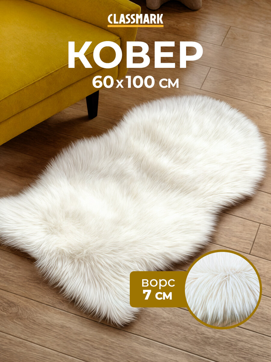 Купить Ковер на пол с ворсом Classmark комнатный, пушистый, 60х100 см, материал изделия 100% полиэстер, основа коврика замш, мягкий и антискользящий, белый