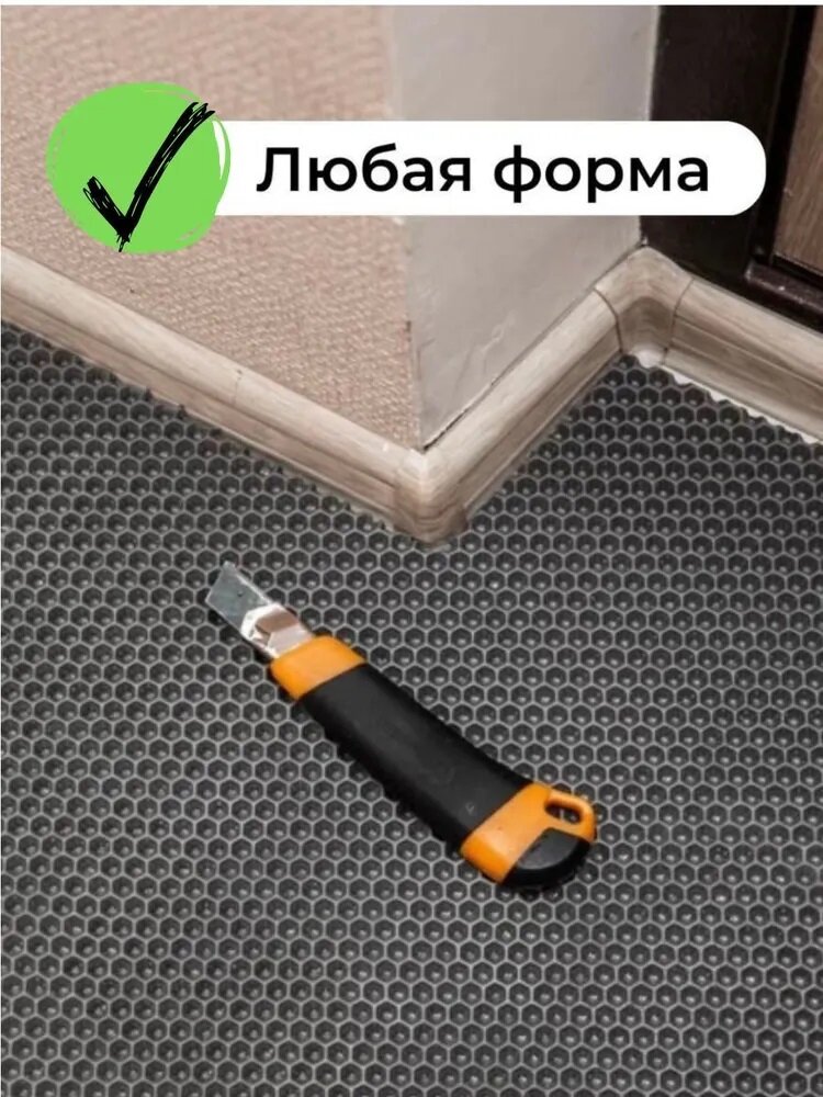 Коврик ЕВА/EVA соты грязезащитный придверный в прихожую, авто, для дачи и дома универсальный 65х68см серый