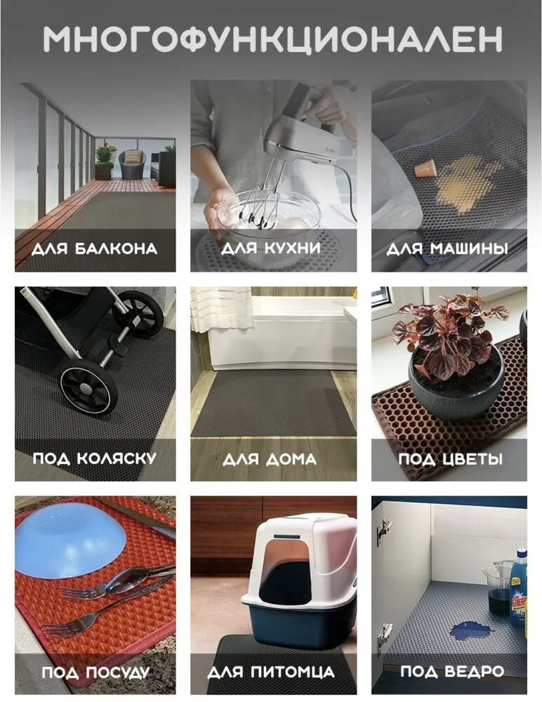 Коврик ЕВА/EVA соты грязезащитный придверный в прихожую, авто, для дачи и дома универсальный 136х65см серый