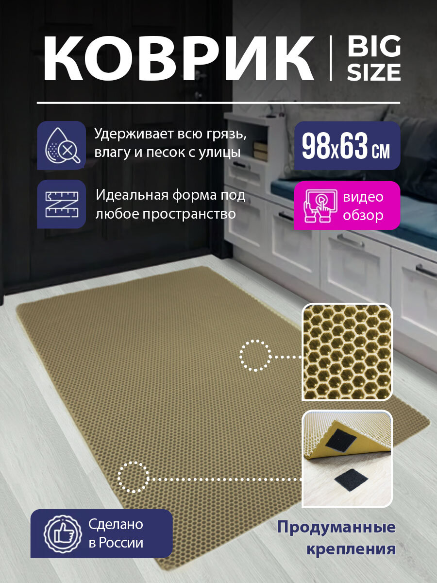 СохранитьКоврик ЕВА/EVA соты грязезащитный придверный в прихожую, авто, для дачи и дома универсальный 98х63см бежевый интересное: