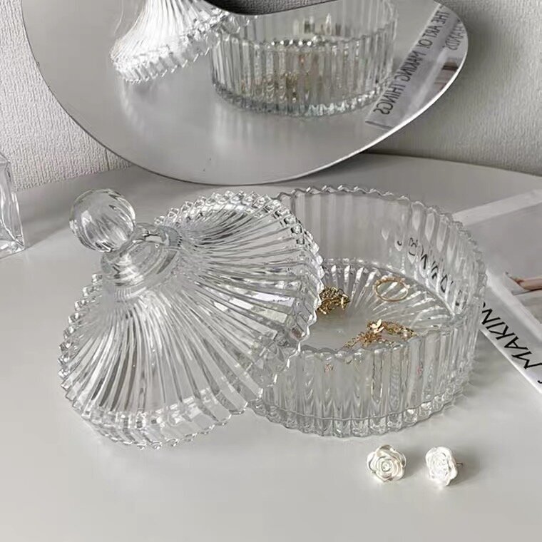 Купить Конфетница из толстого стекла с крышкой 550ml, большая сахарница, ваза для конфет, банка для хранения, ваза для орехов, тарелка с крышкой