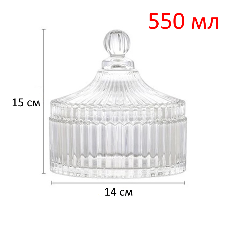 Конфетница стеклянная с крышкой 550ml / сахарница / ваза для конфет / банка для хранения / креманка / ваза для орехов