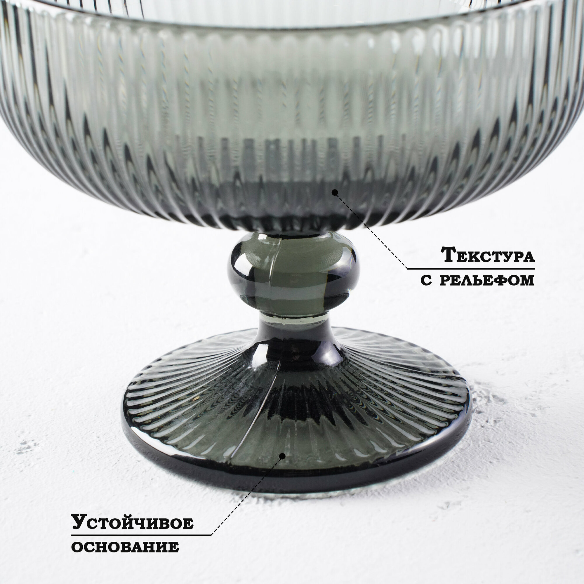 Купить Креманка стеклянная для мороженного и десертов Magistro «Грани» 300 мл, цвет графит