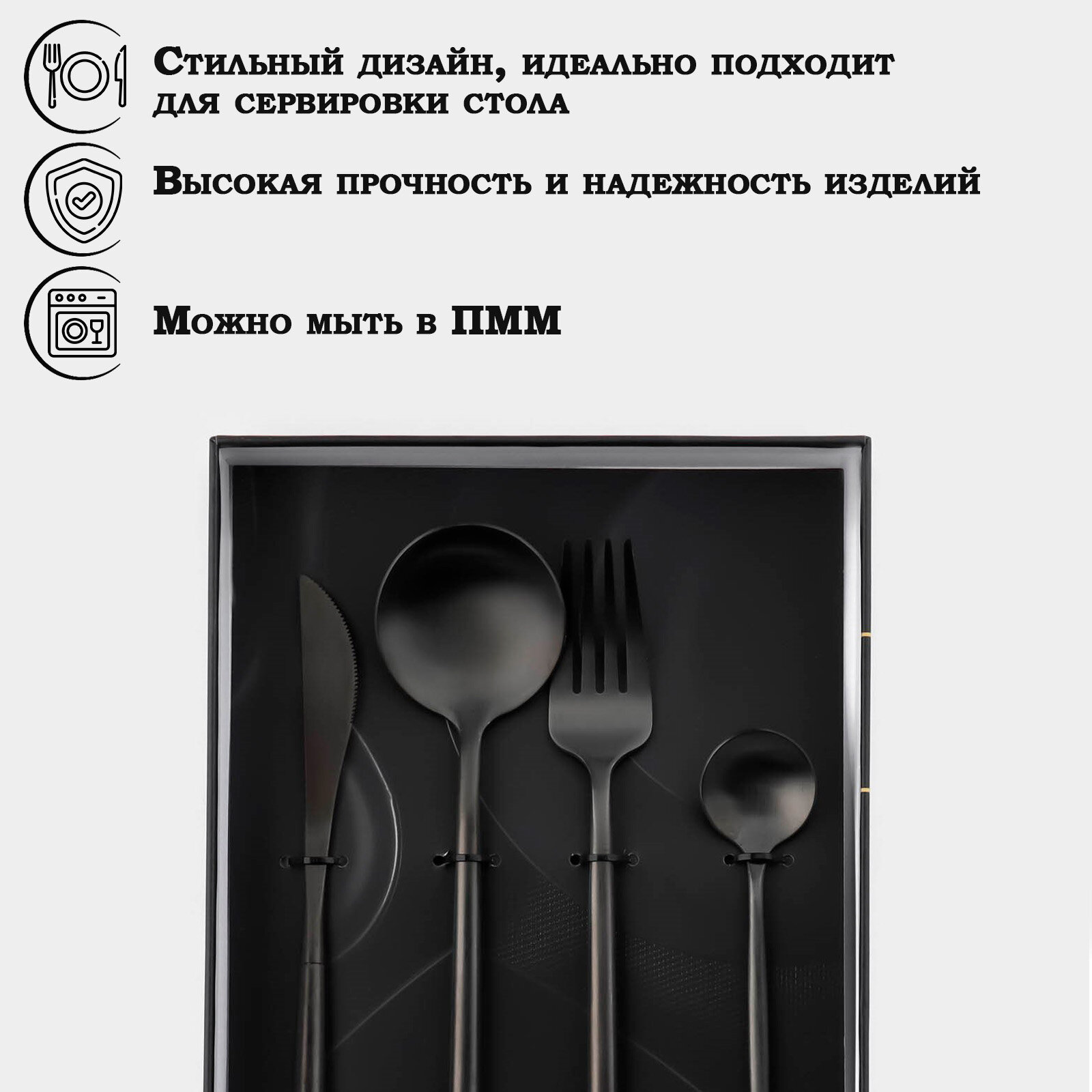 Набор столовых приборов из нержавеющей стали Magistro «Фолк», 4 предмета, цвет чёрный (арт. 3899296)