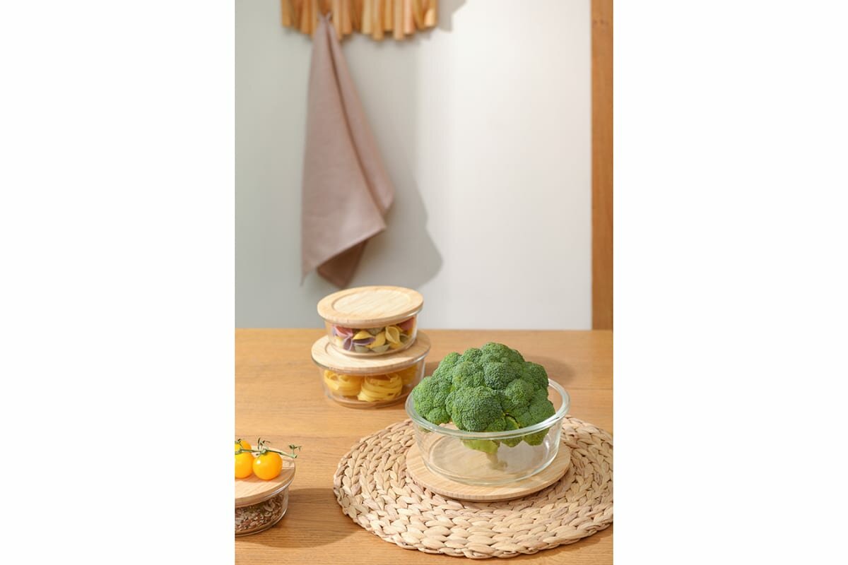 Набор контейнеров Smart Solutions для запекания и хранения с крышками из бамбука, 3 шт.