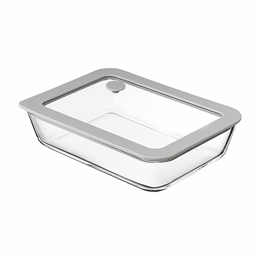 Контейнер для хранения и запекания прямоугольный с крышкой, 1,5 л, светло-серый