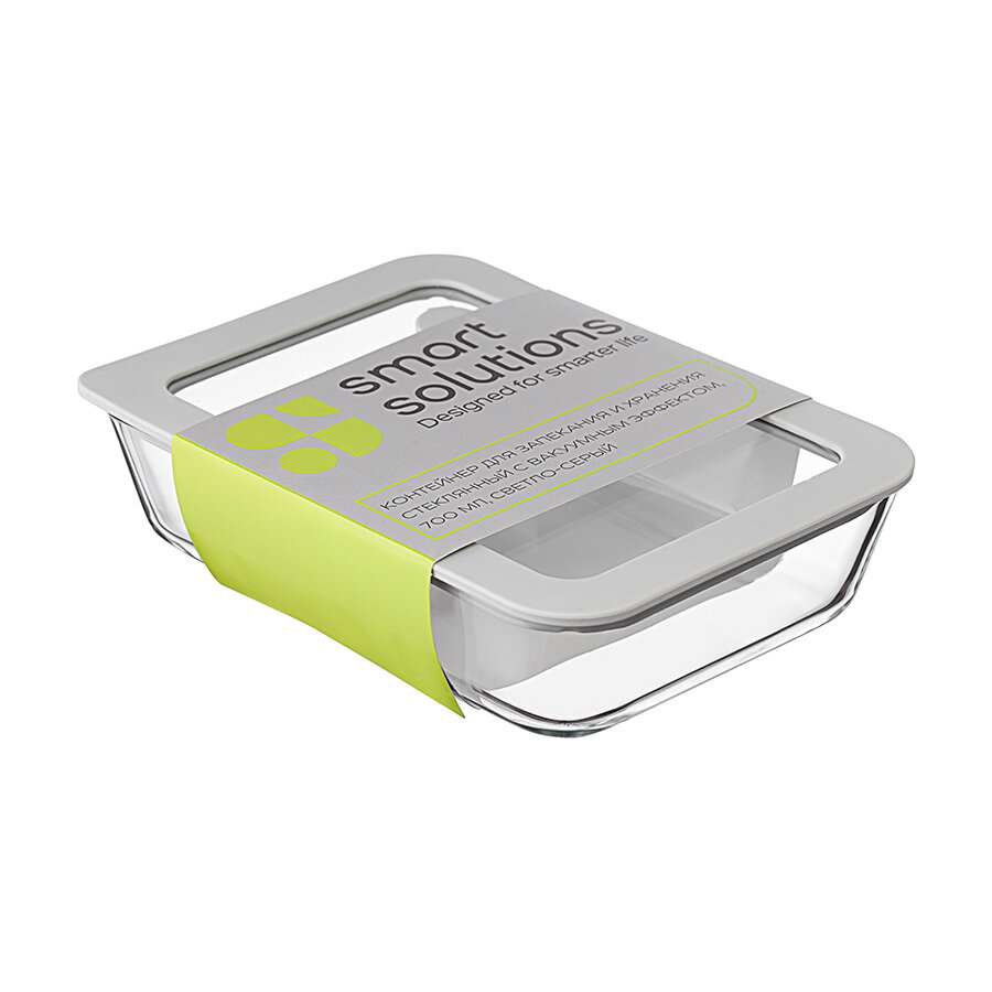 Купить Контейнер для хранения и запекания продуктов 700 мл стеклянный с вакуумным эффектом светло-серый Smart Solutions SS0000227