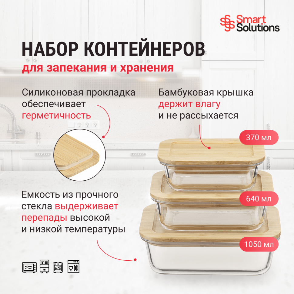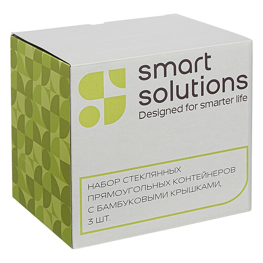 Купить Набор стеклянных прямоугольных контейнеров Smart Solutions с бамбуковыми крышками, 3 шт. (SFE-SS-CN-GLS-BM-RC1.05)