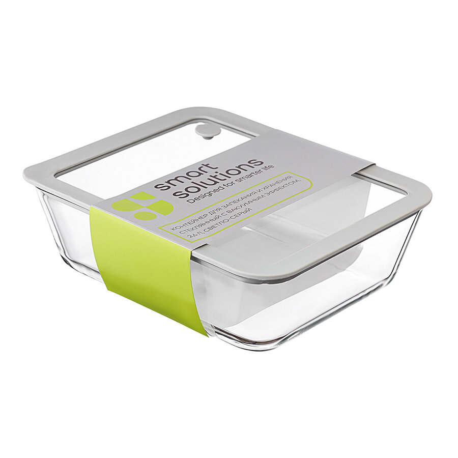 Купить Контейнер для хранения и запекания продуктов 2,6 л стеклянный с вакуумным эффектом светло-серый Smart Solutions SS0000229