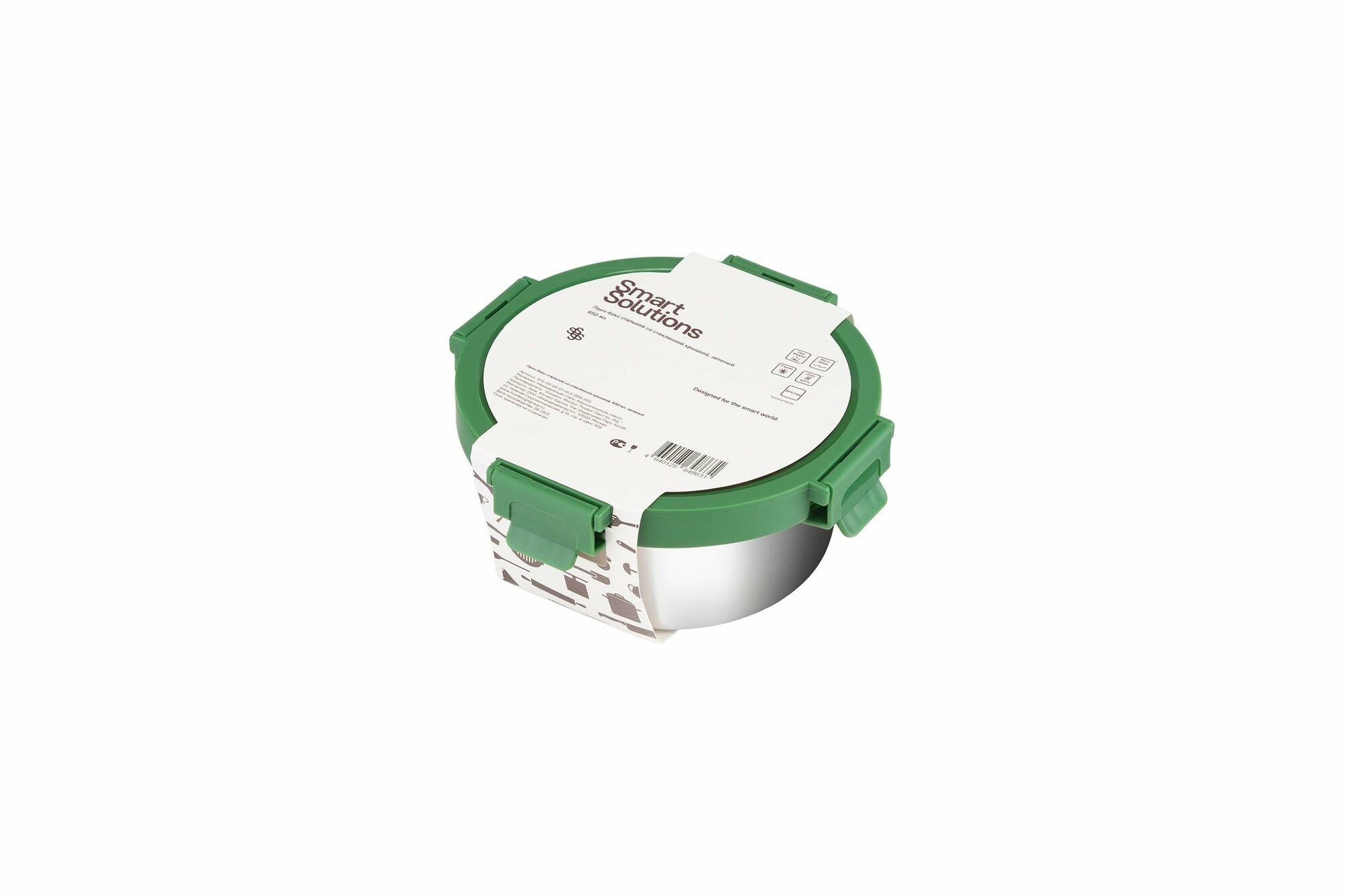 Ланч-бокс стальной со стеклянной крышкой Smart Solutions 650 мл, зеленый