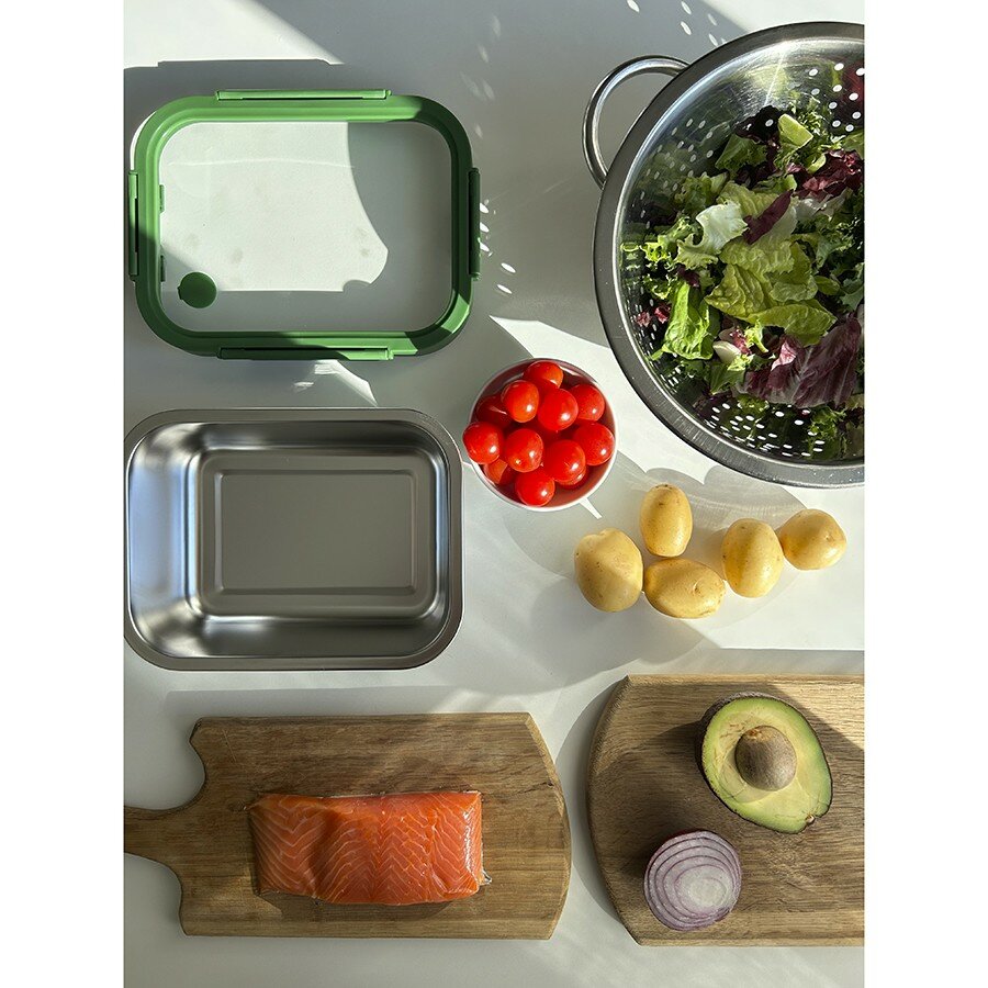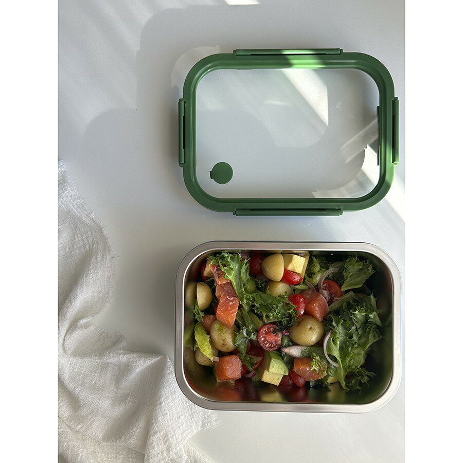 Ланч-бокс стальной со стеклянной крышкой, 650 мл, зеленый