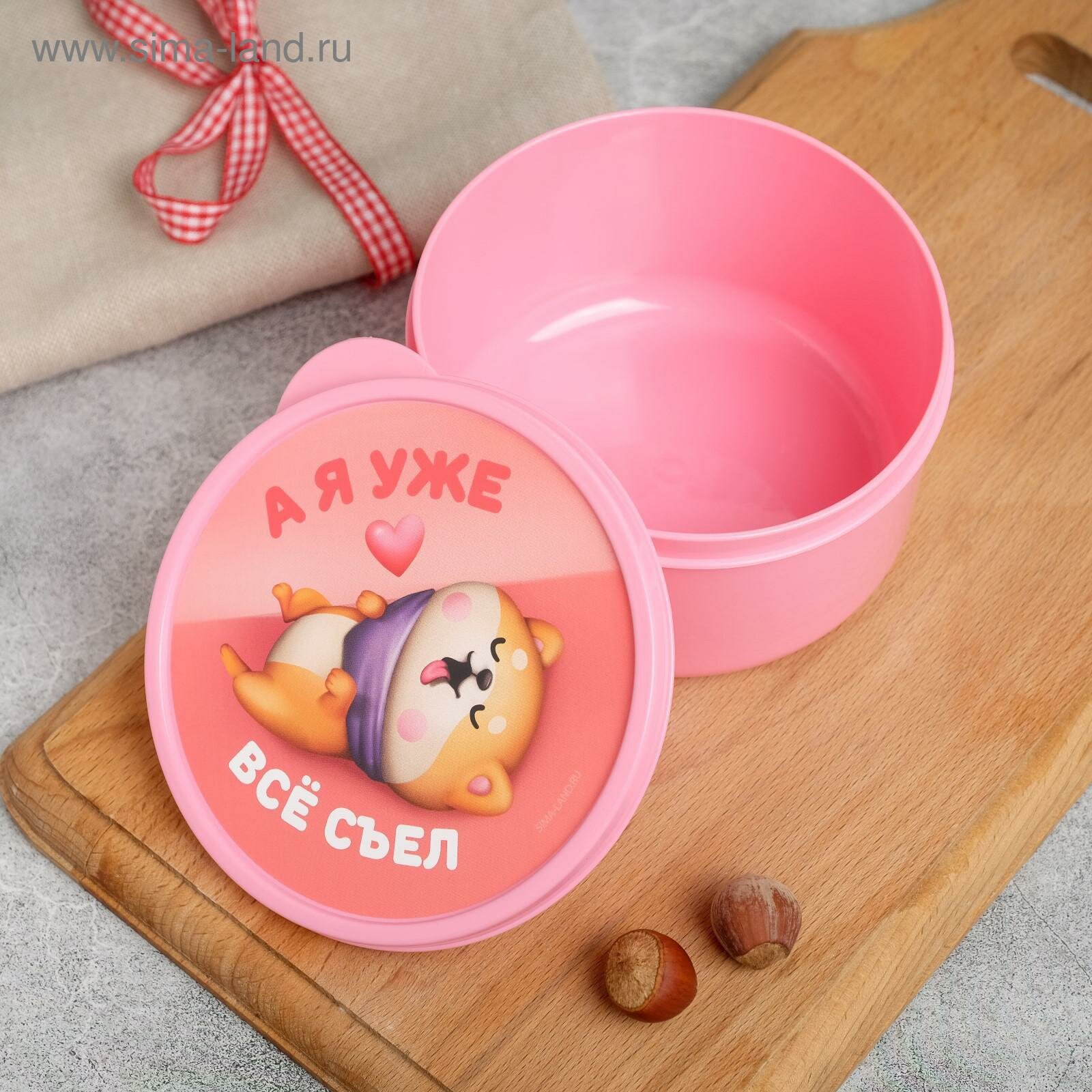 Купить Ланч-бокс FoodVibes - Я уже все съел, из пластика, цвет розовый, круглый, 500 мл, 1 шт