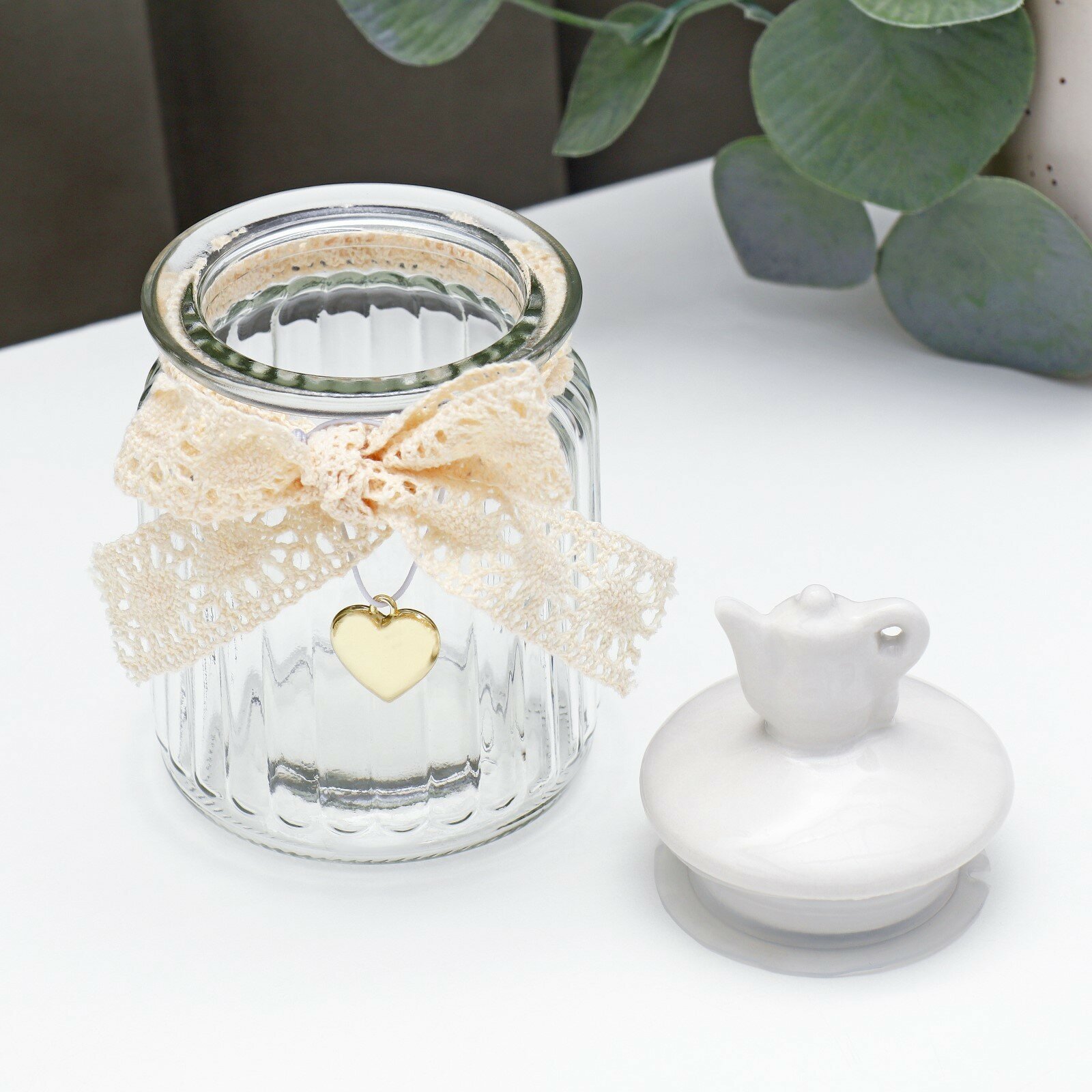 Купить Банка для сыпучих продуктов с керамической крышкой, сахарница стеклянная Доляна «Чайные беседы» 300 мл