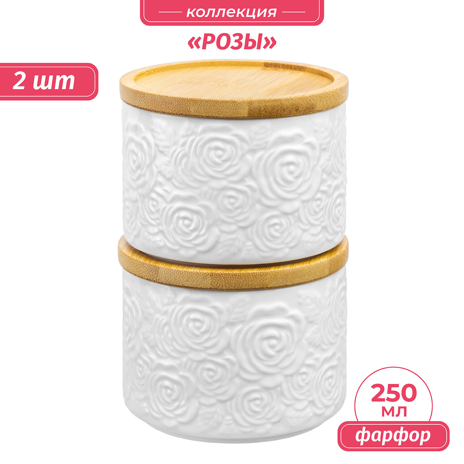 Банка для хранения сыпучих продуктов / соли / специй /чая / кофе с крышкой 2 шт по 250 мл Elan Gallery "Розы", набор