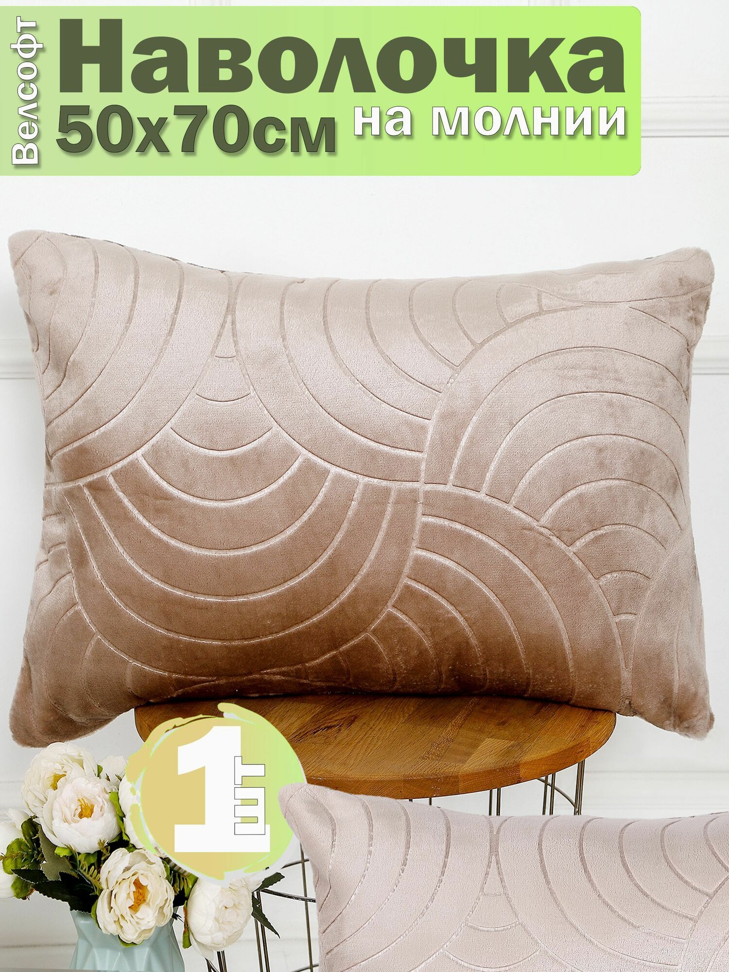 Наволочка Lizzy Home велсофт на молнии 50х70 цвет крем-брюле