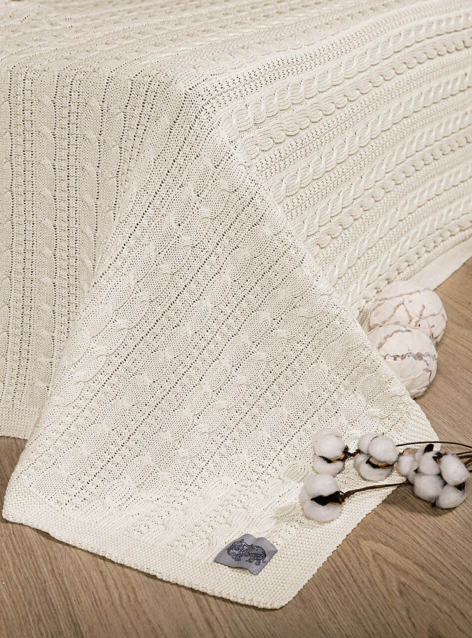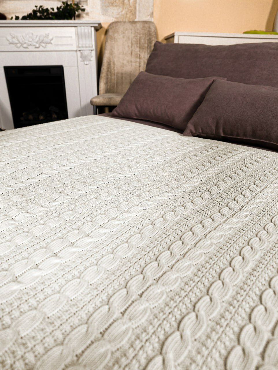 Купить Плед 220х240, вязаный, Warm Whiff, молочный, хлопок 100%, покрывало на кровать, на диван, на кресло, большой, тонкий, в подарочной коробке