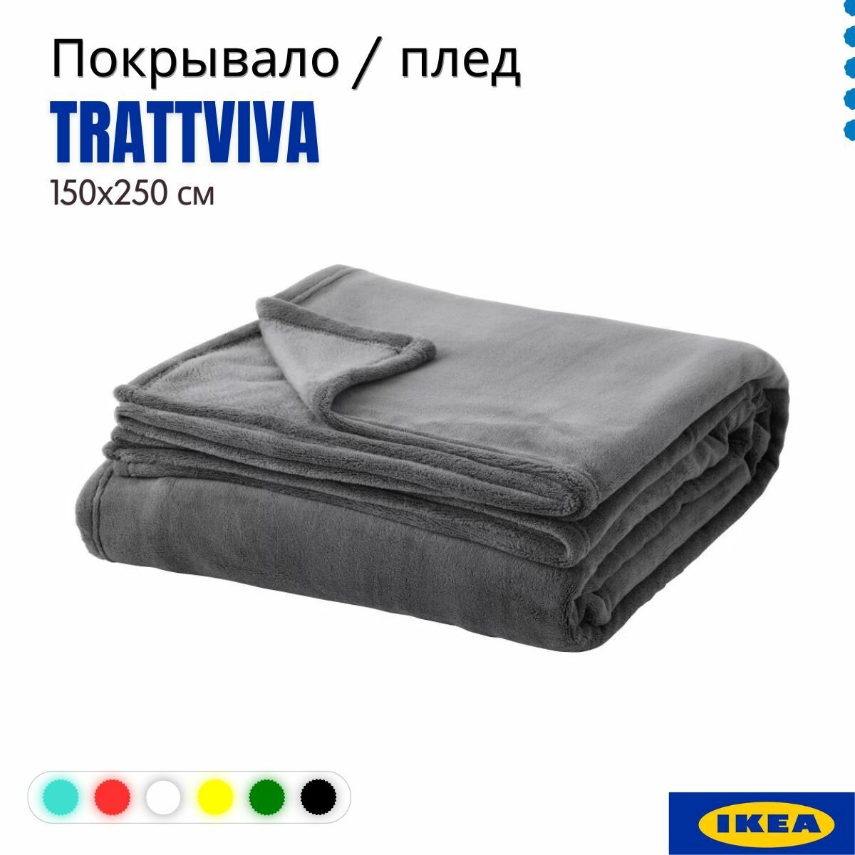 Покрывало на кровать IKEA траттвива, серый 150x250 см, 103.840.45. Плед флисовый Trattviva