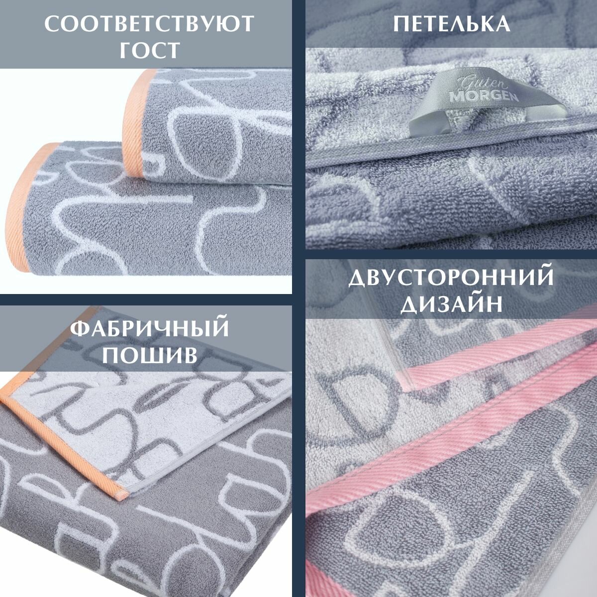 Полотенце махровое "Гутен Морген" Адажио (70 х130), 100% хлопок, серый