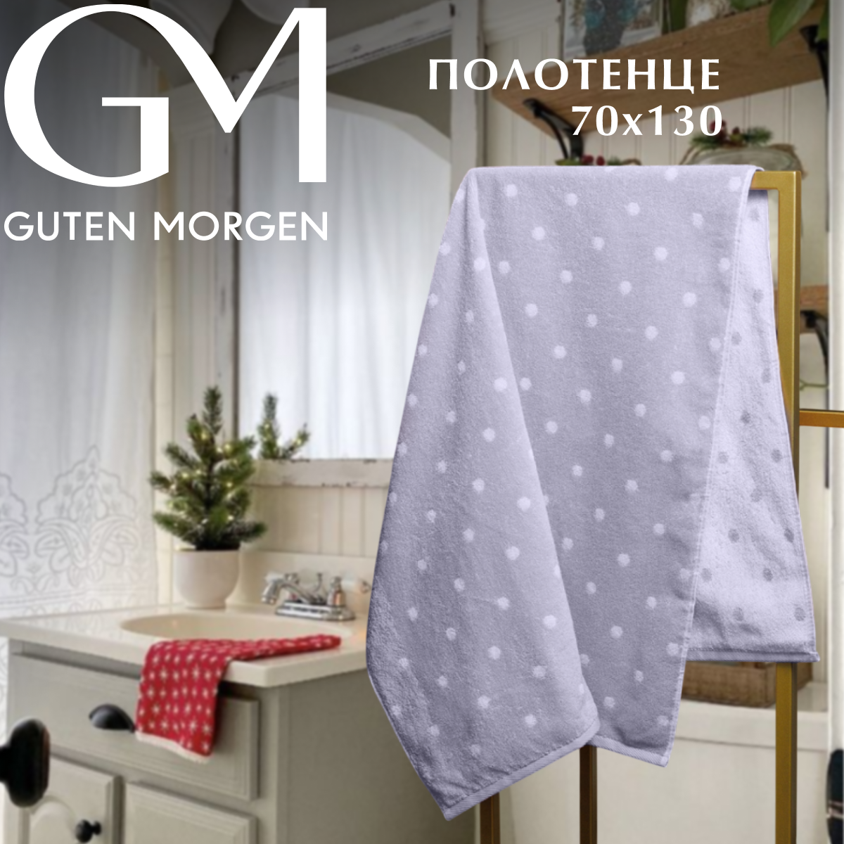 Новогоднее Полотенце махровое, Guten Morgen 1 шт, 70х130, Лотос, хлопок 100%, 450 г/м2 подарок
