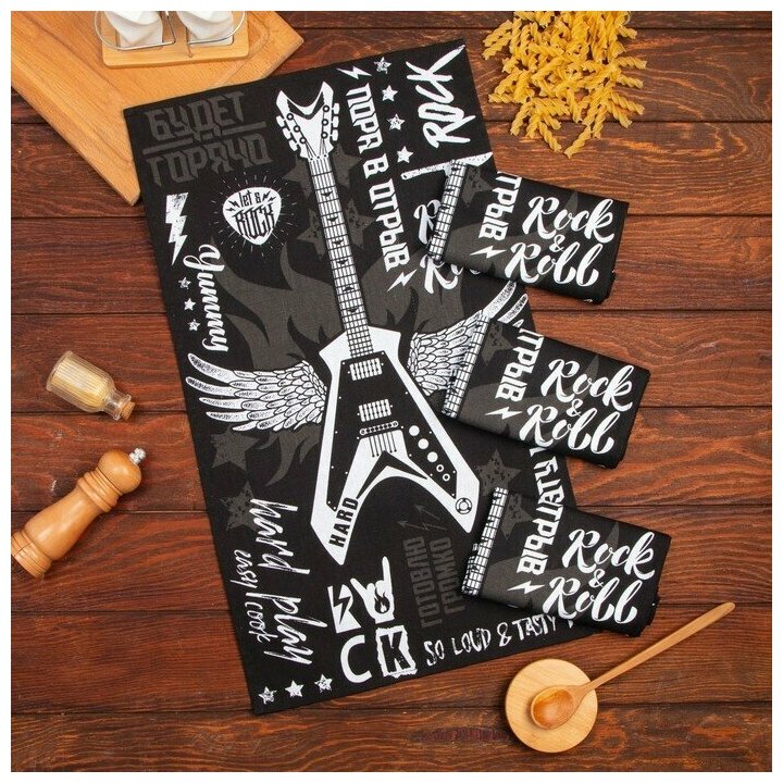 Доляна Набор кухонных полотенец Доляна Rock'n'roll 35х60см-4шт, 100% хл