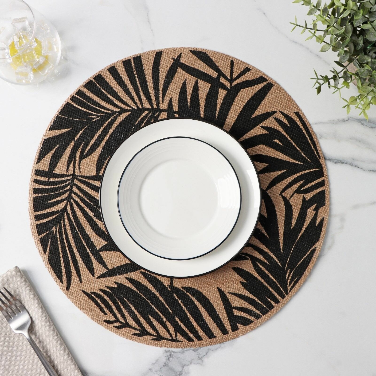 Салфетки сервировочные на стол Доляна Листья, 4 шт, d=38 см, цвет чёрный Доляна 9457959 .