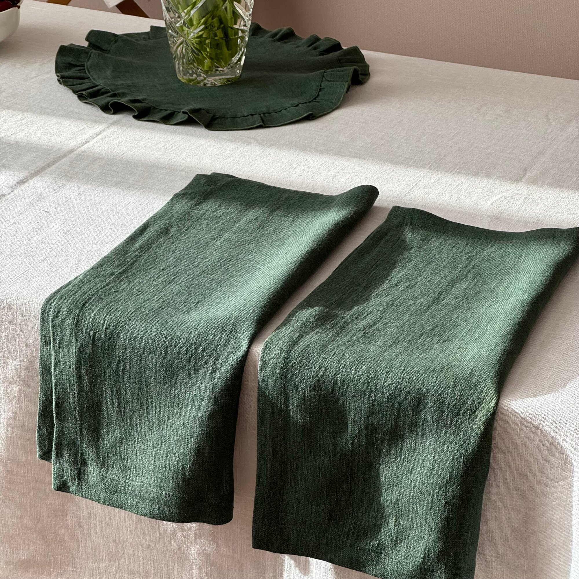 "Салфетка LenJuLen" - сервировочная салфетка 35х45 из умягчённого льна зеленый