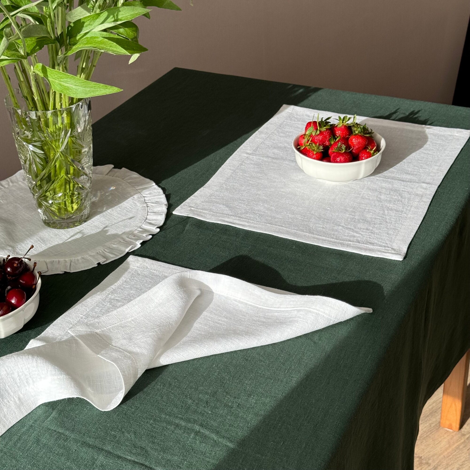 Сервировочная салфетка "LenJuLen", лен, 35x45 см, цвет лесной зеленый