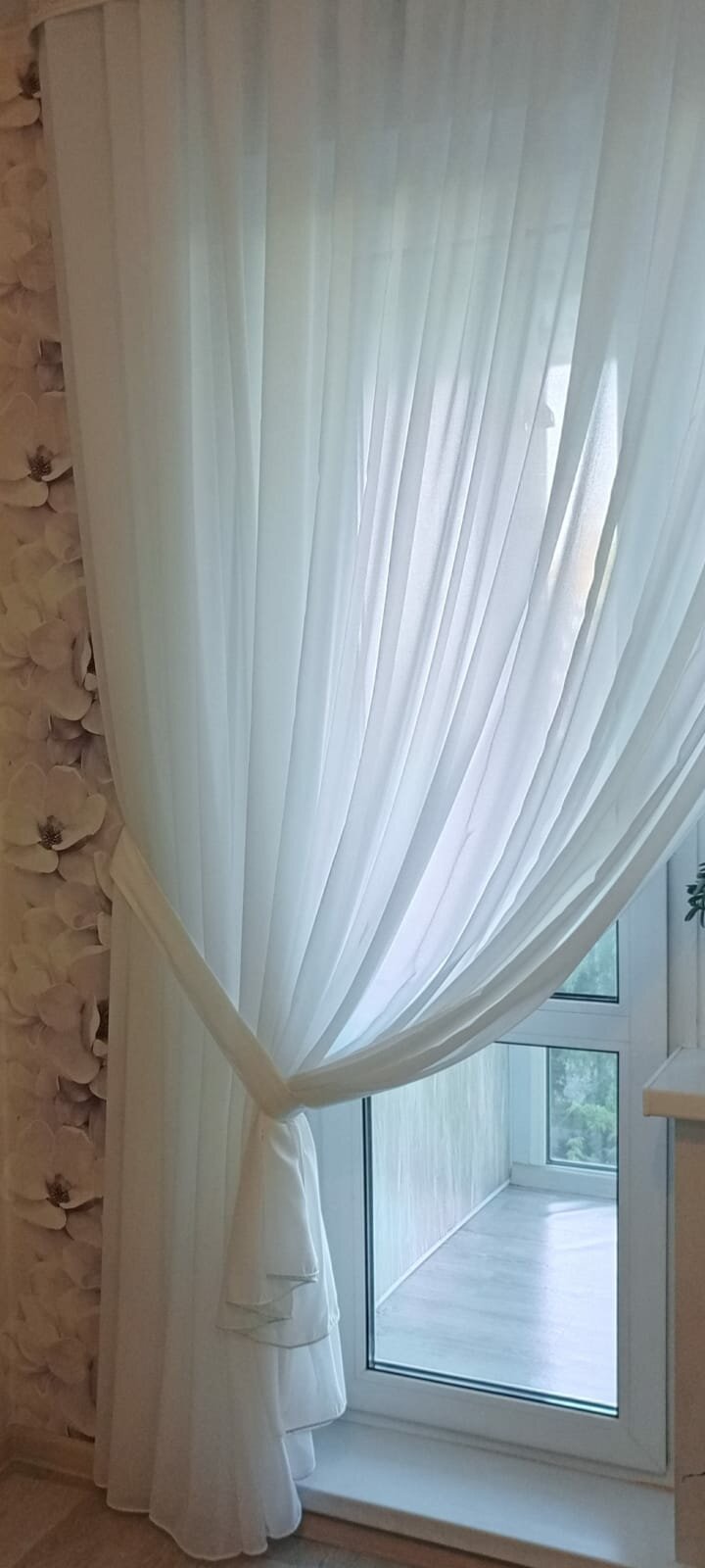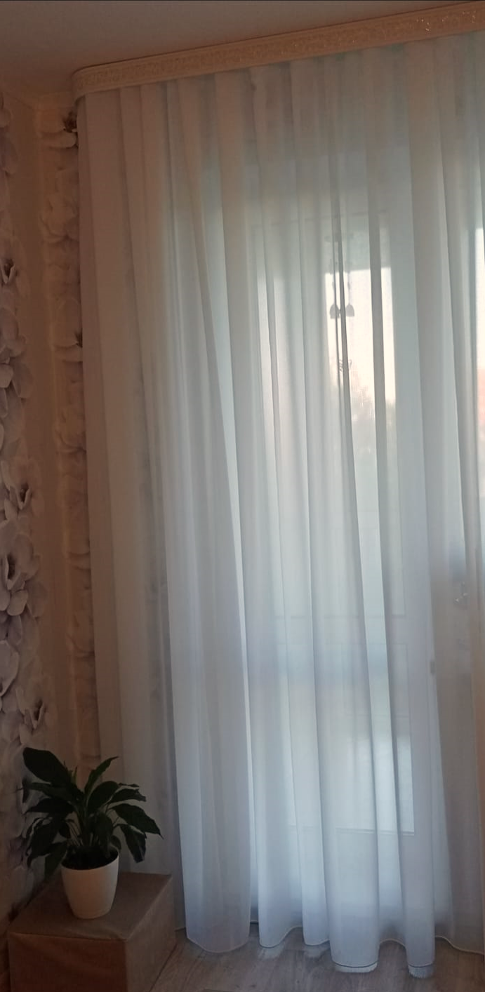 | Комплектация | шторная лента шириной 6 см пришита к верху тюля |