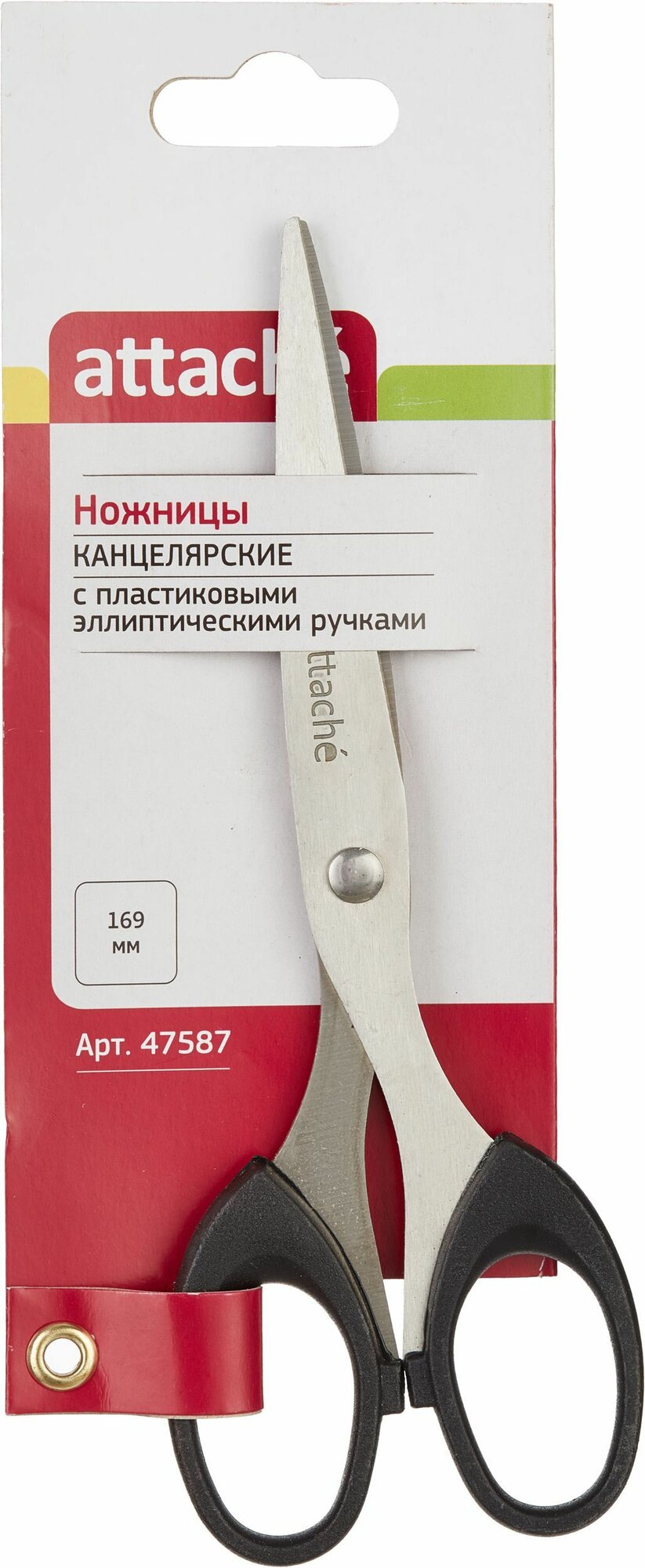 Ножницы Attache 169 мм, с пластиковыми эллиптическими ручками, цвет черный
