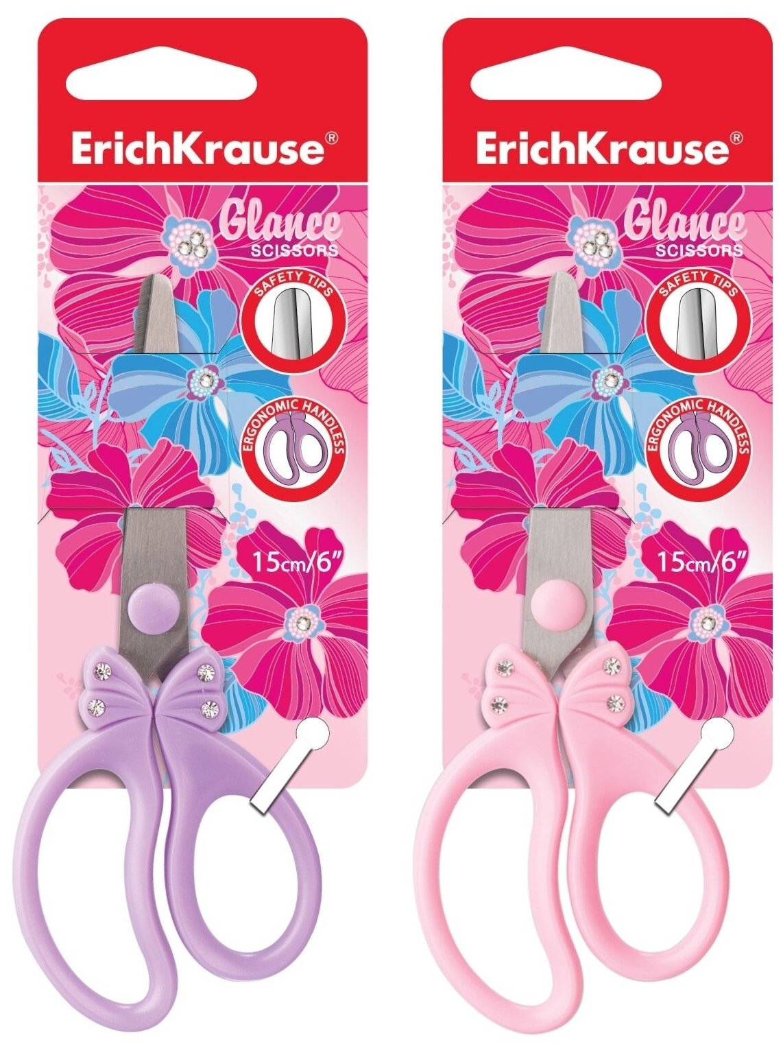 Купить Ножницы детские 15см ErichKrause "Glance" с закруглён концами лезв, со стразами микс 37434 1135435