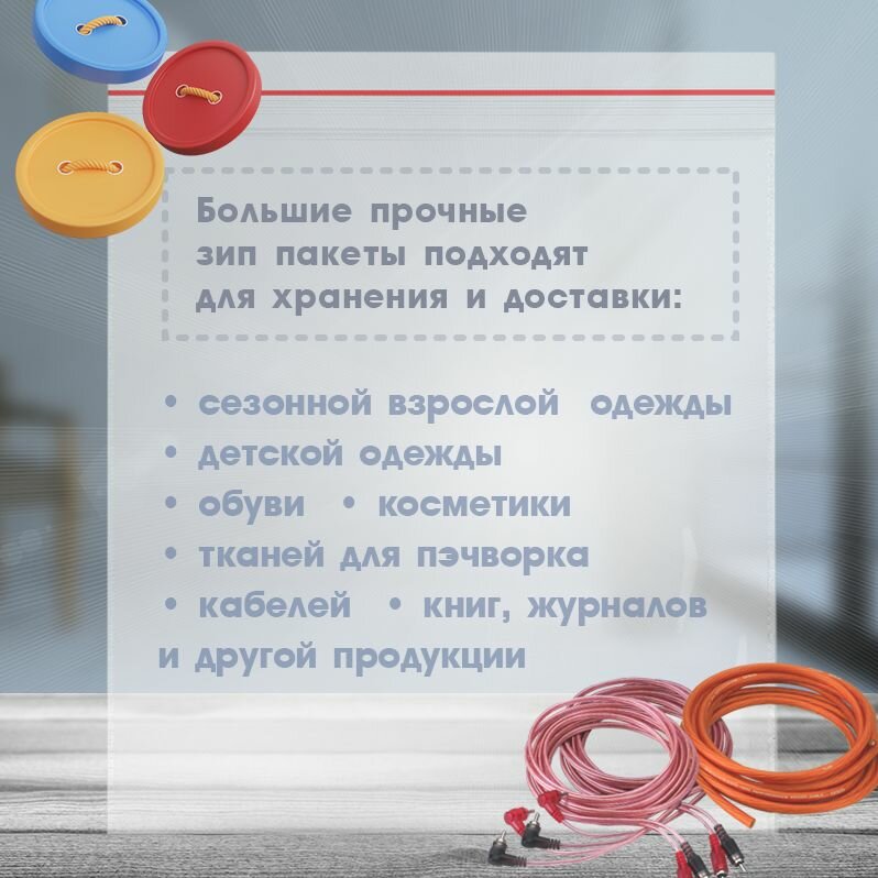 Пакеты zip lock 60х70см, сверхпрочные, толщина 50 мкм, 50 штук