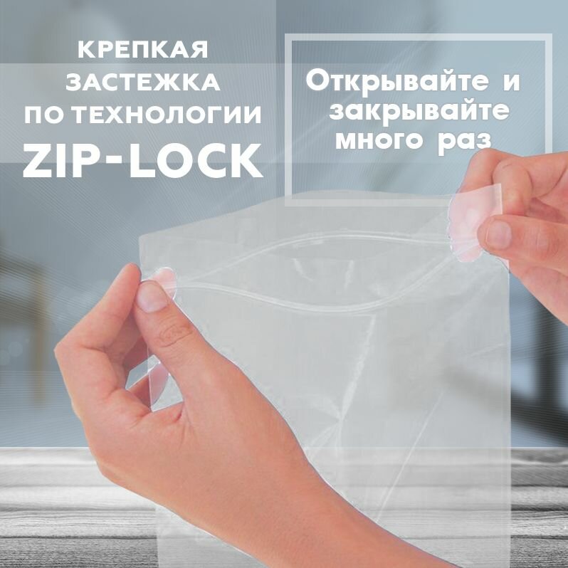 Пакеты zip lock 12х15см, сверхпрочные, толщина 50 мкм, 100 штук