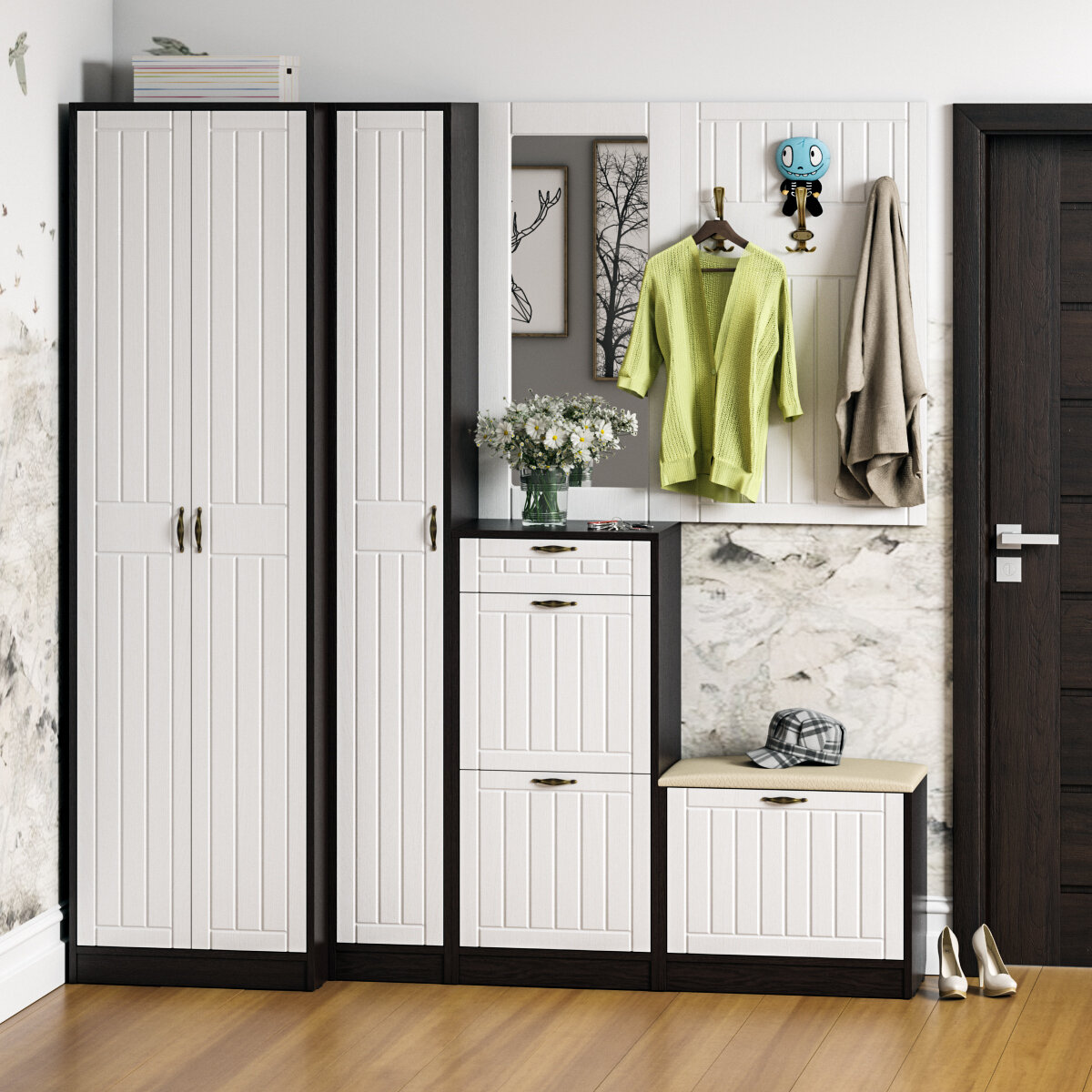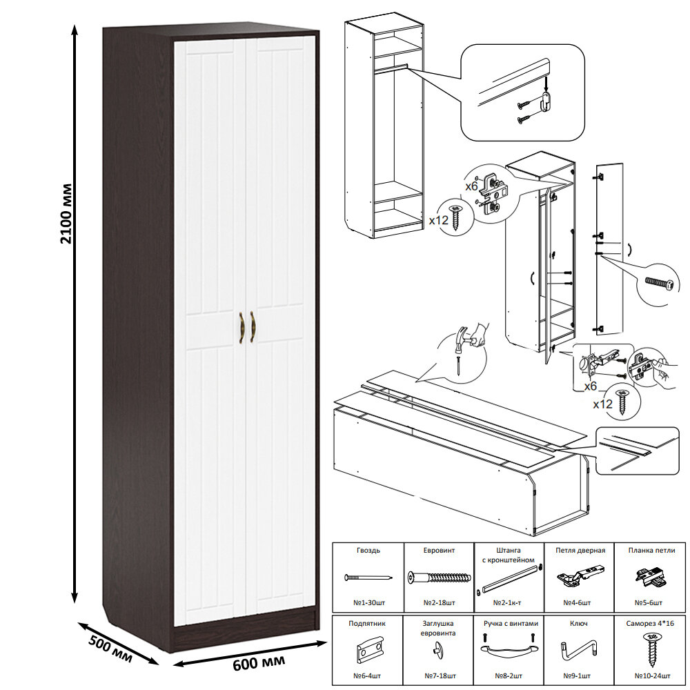 Прихожая Мебельный двор П-6 Шкаф, цвет венге/фасады МДФ белое дерево фрезеровка прованс (1024756)