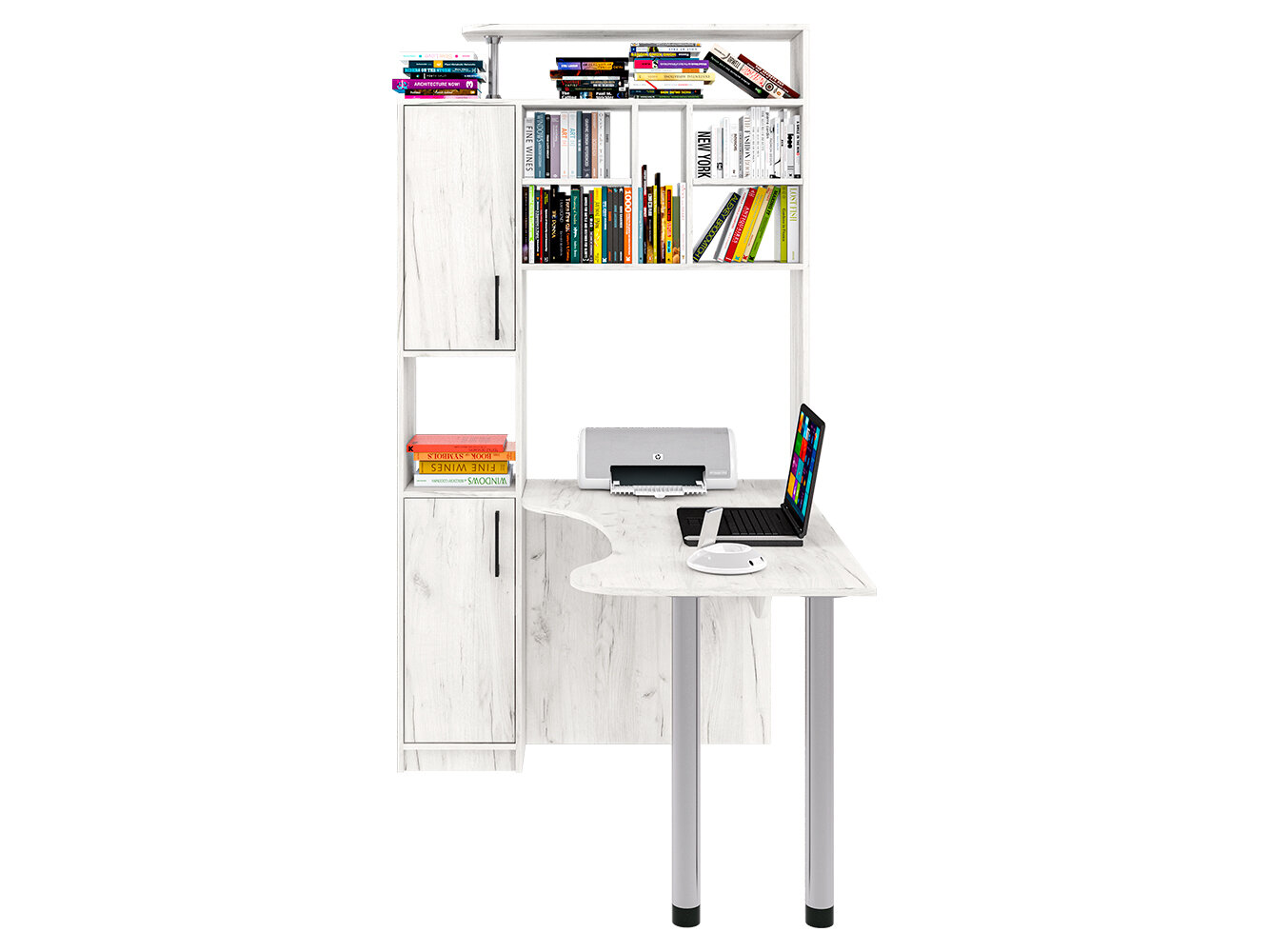 Угловой компьютерный стол КС-14 с надстройкой и пеналом белый